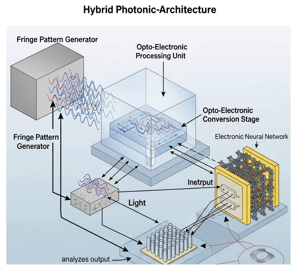 Photonic stage (your “Fringe Pattern Generator / Photonic Processing Unit”)