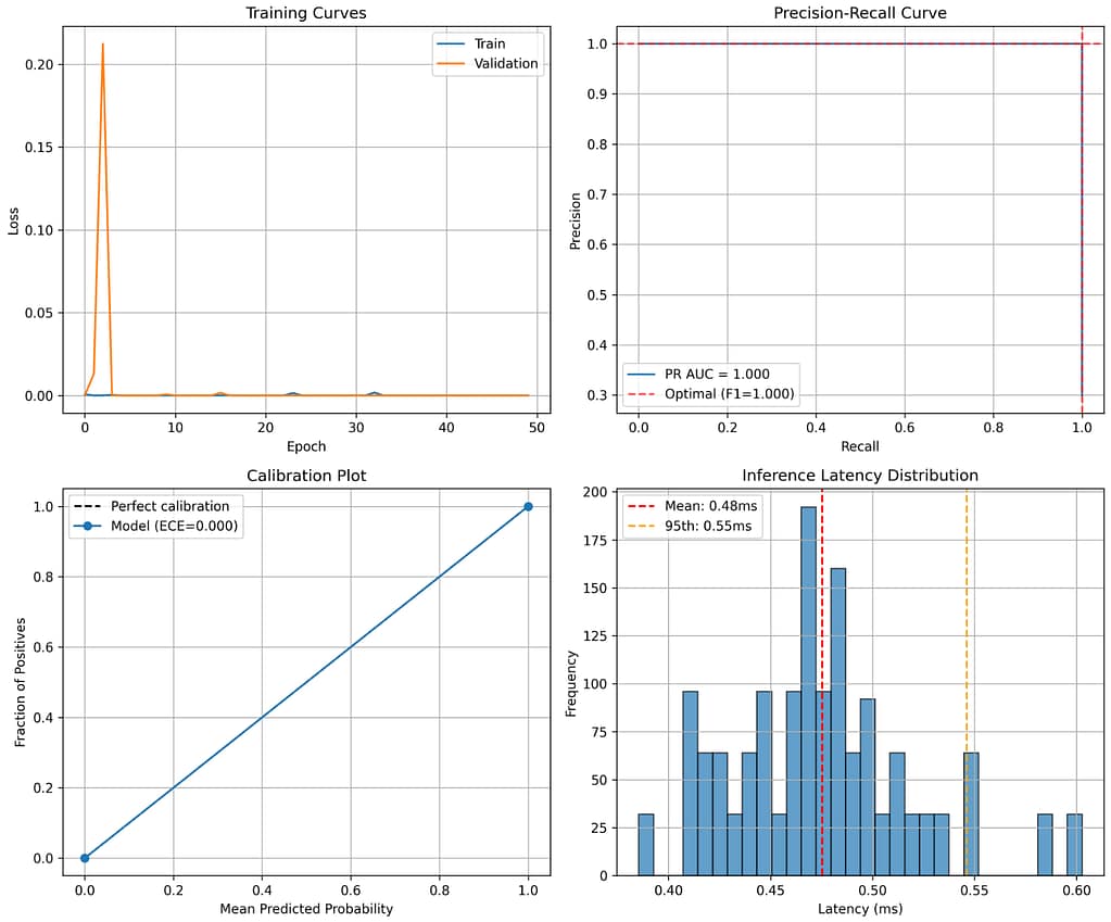 - Comprehensive metrics (PR curves, latency, calibration)