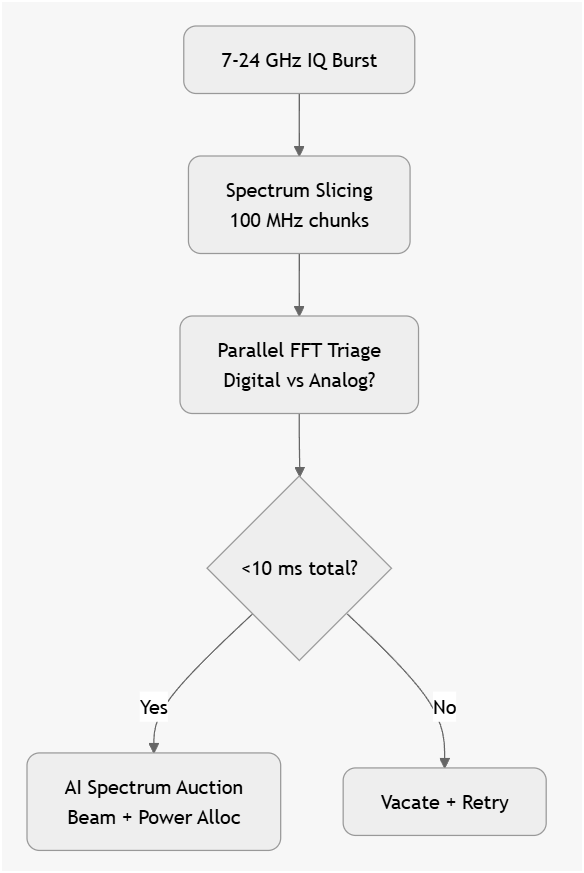 Key difference from CBRS: Sub-10 ms decisions for beamformed, AI-coordinated coexistence.