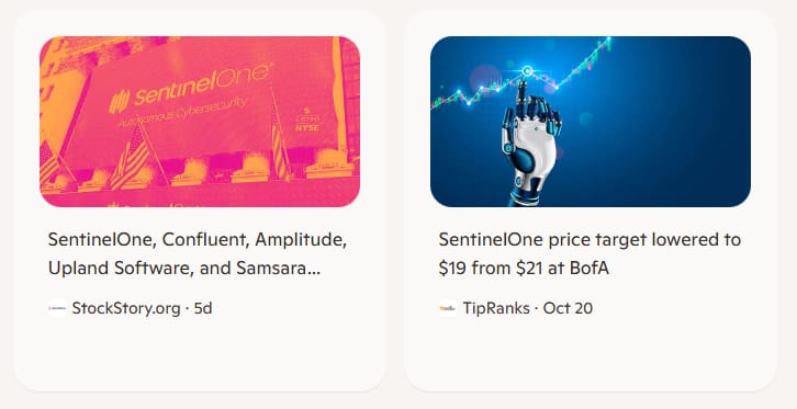 - Recent news developments: Broader tech market caution following AI-driven rallies has impacted high-growth stocks like SentinelOne, with concerns over stretched valuations and profit-taking dominating sentiment 1.