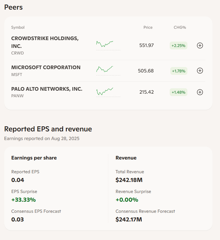 - Earnings results: SentinelOne reported Q2 FY 2026 EPS of $0.04, exceeding expectations of $0.03. Total revenue grew 22% year-over-year to $242 million, driven by a 24% increase in Annual Recurring Revenue (ARR) to over $1 billion. Gross margin remained strong at 79%, and operating margin improved by over 500 basis points to 2%.