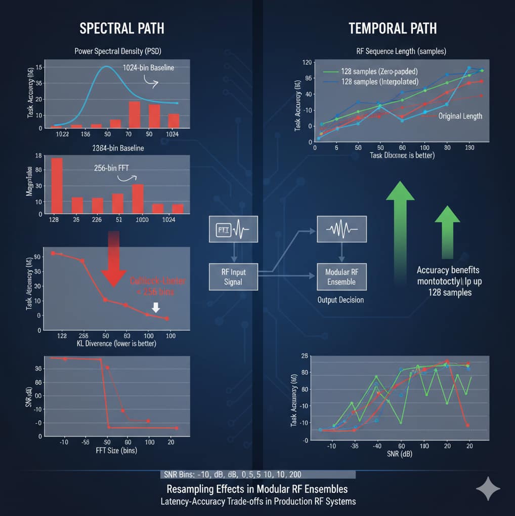 varying FFT sizes against a 1024-bin baseline using KullbackLeibler (KL) divergence. For the temporal path, we study task